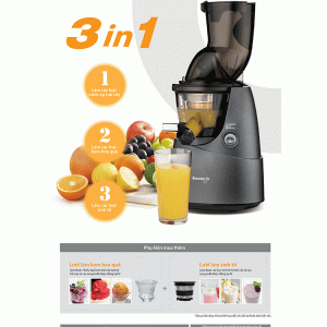 Máy ép trái cây tốc độ chậm hiệu Kuvings cho lượng nước ép nhiều gấp 1.5 lần, giữ được nhiều Vitamin, Enzym trong rau củ quả gấp 5 lần so với máy truyền thống, hoạt động liên tục 30 phút, chế độ tự động ngắt điện an toàn và khóa an toàn kép, ép được các loại rau, củ, quả và ngũ cốc với nhau, ống tiếp nguyên liệu thông minh 2 trong 1 thế hệ mới O Type Flap Gate rộng đến 82 mm để ép nguyên trái và ép rau, thuận tiện sử dụng cho gia đình và nhà hàng, có 2 màu : màu vàng champagne và màu xám carbon.